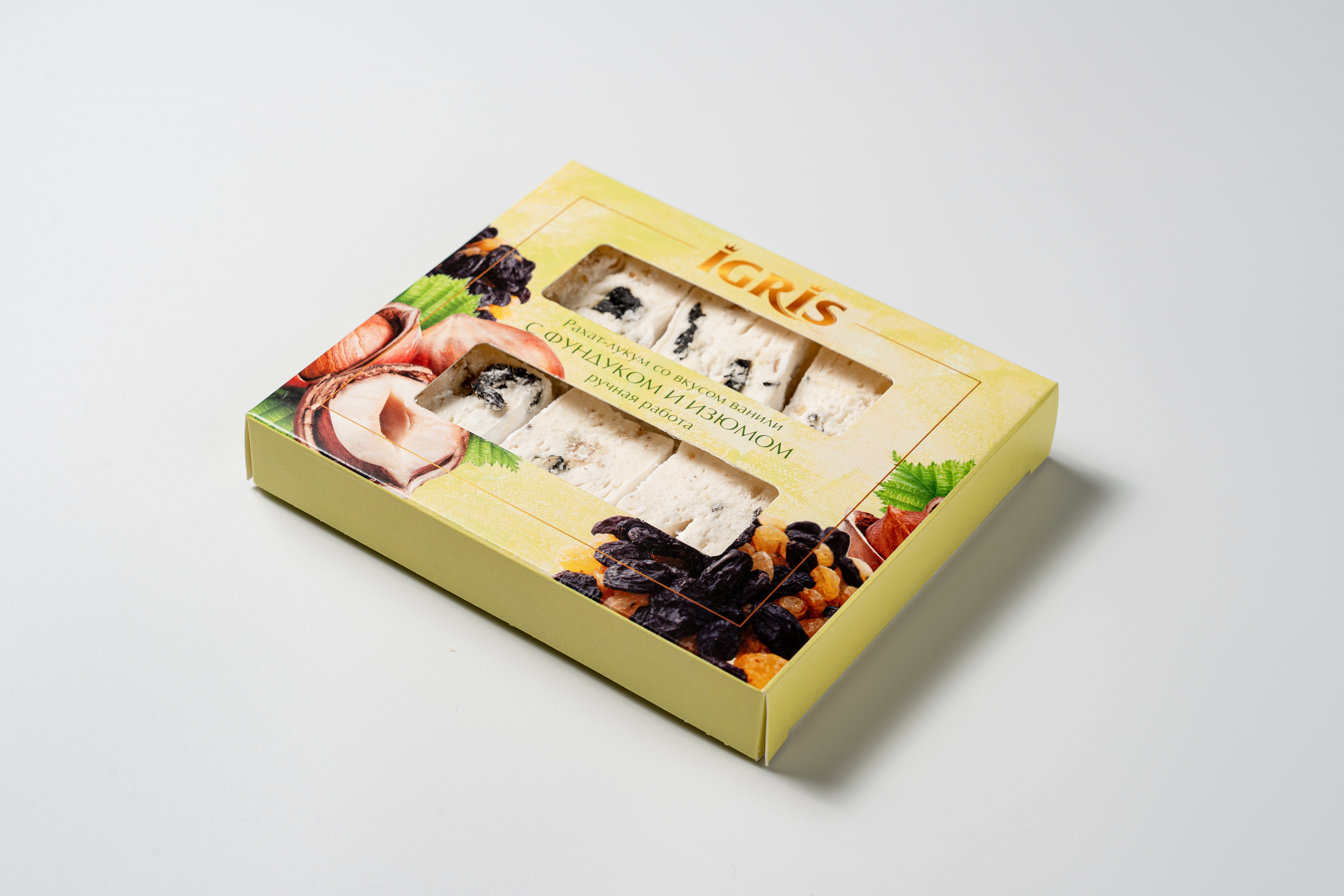 Состав: вода питьевая, сахар-песок, загуститель: крахмал кукурузный, цельный жареный фундук, изюм, экстракт мыльного корня, регулятор кислотности: лимонная кислота.