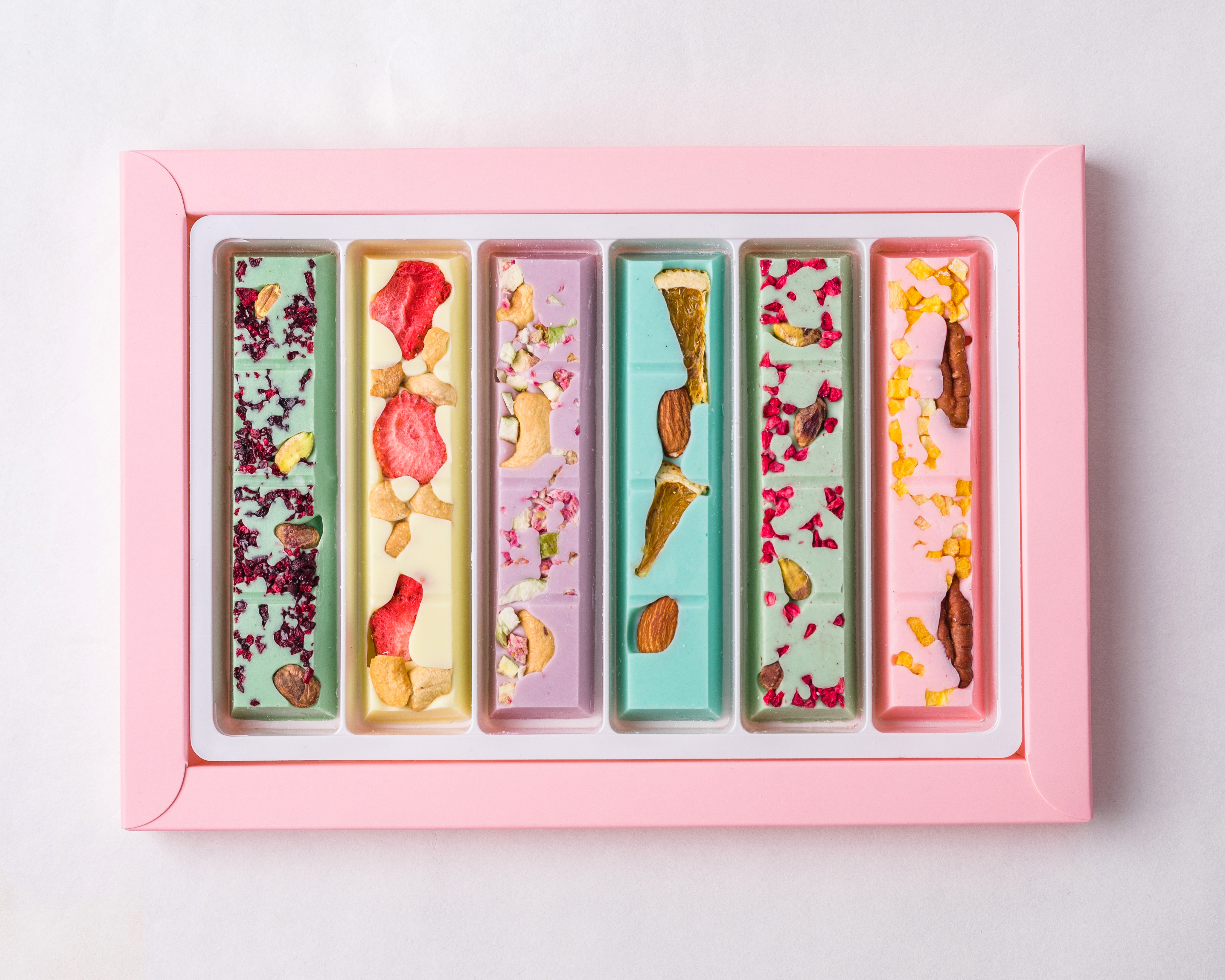 КОМПЛИМЕНТ.Белый шоколад с сублимированными фруктами и орехами (PINK) 215 грамм